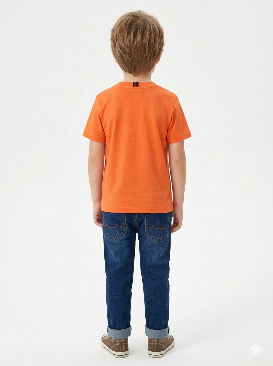Orange Dino Printed T-shirt